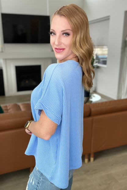 Unleash your inner fashionista with our Textured Line Twisted Short Sleeve Top in Coral! The ribbed fabric and twist trim detail add a touch of texture to this high-stretch, boxy fit top. Elevate your style game and stand out in this must-have piece.